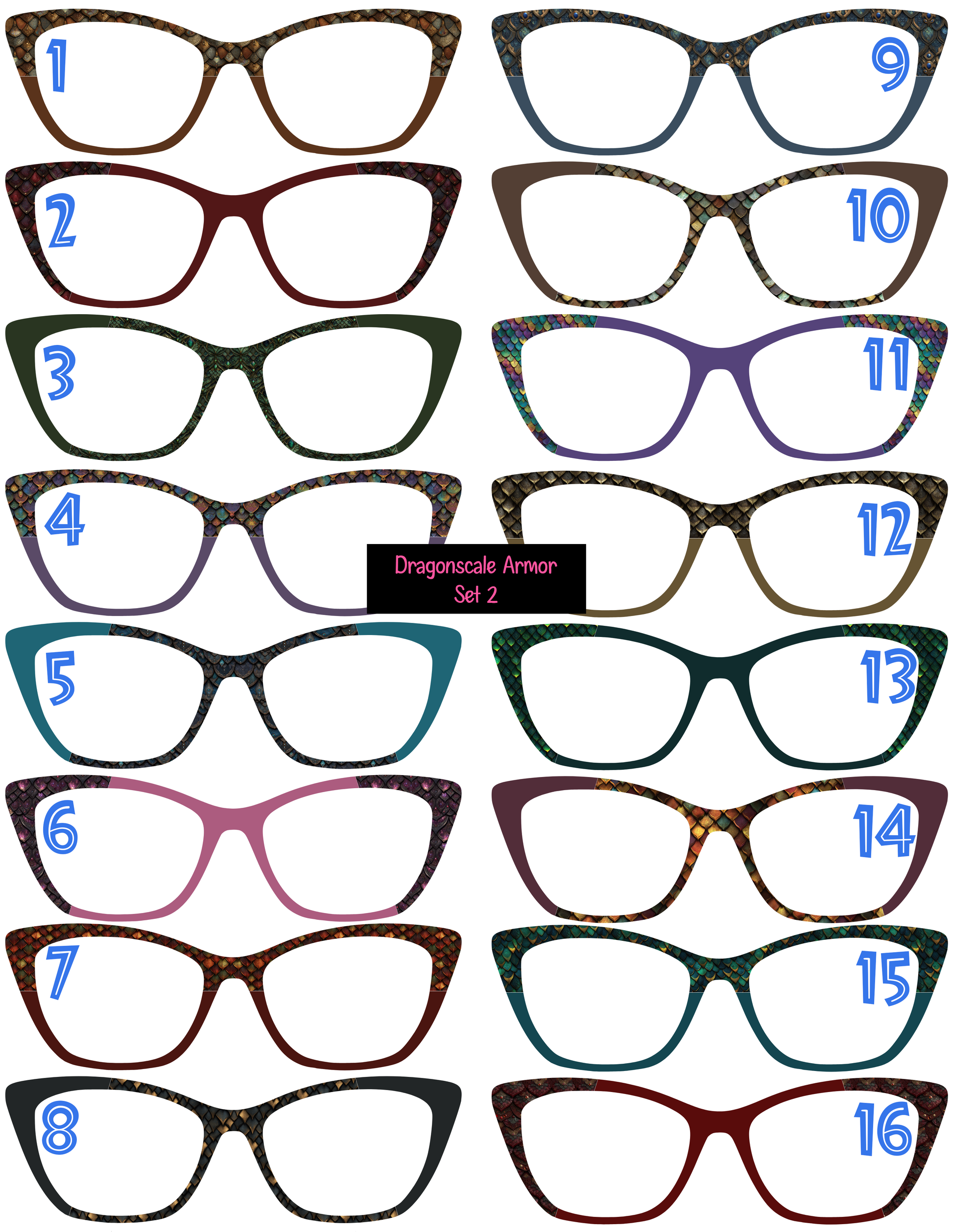 Command attention with dragonscale armor toppers. These fierce toppers feature an intricate scale pattern that transforms your frames into a bold statement. Embrace your warrior spirit.