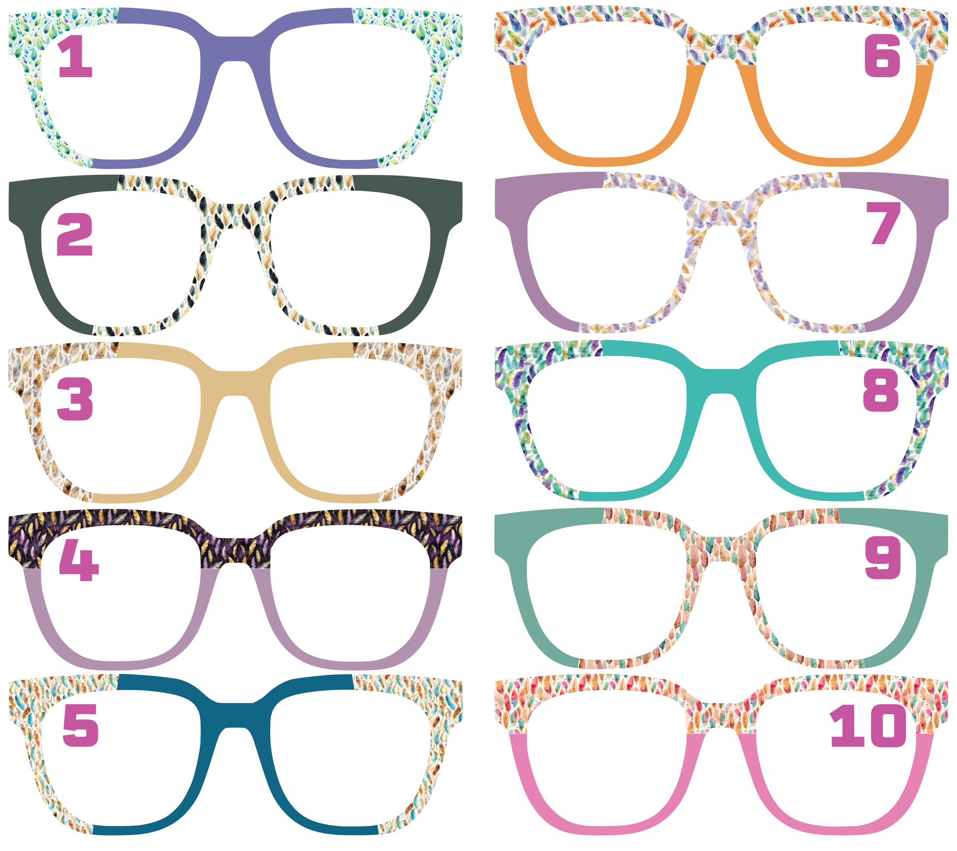 Light, whimsical feather designs that add a dash of personality to your eyeglasses. These charming toppers blend delicate artistry with bold color, transforming your frames into a fashion statement that's impossible to miss.